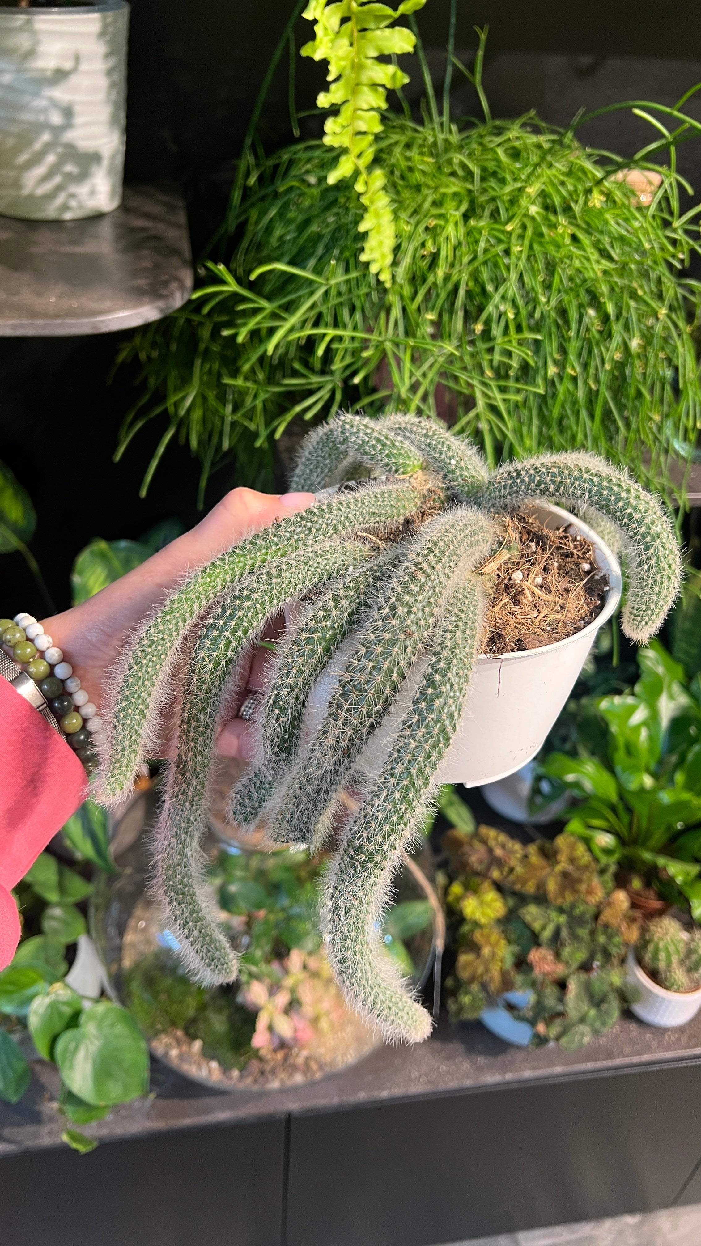 Ideal for cactus collectors, plant lovers, or anyone seeking a low-maintenance decorative succulent, the Monkey Tail Cactus brings texture, color, and movement to any plant display.